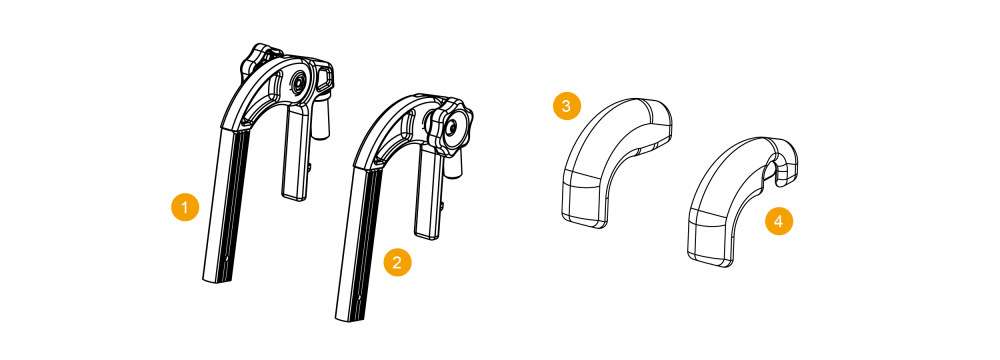Die dynamischen Beinstützen sind für Unterschenkellänge 240-310 mm (SB 250) und 290-350 mm (SB 300-350).