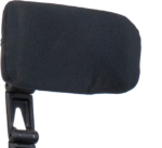 Die Meylife Kopfstütze kann mit schwarzen Kunstleder Bezug oder schwarzem Textilbezug bestellt werden.