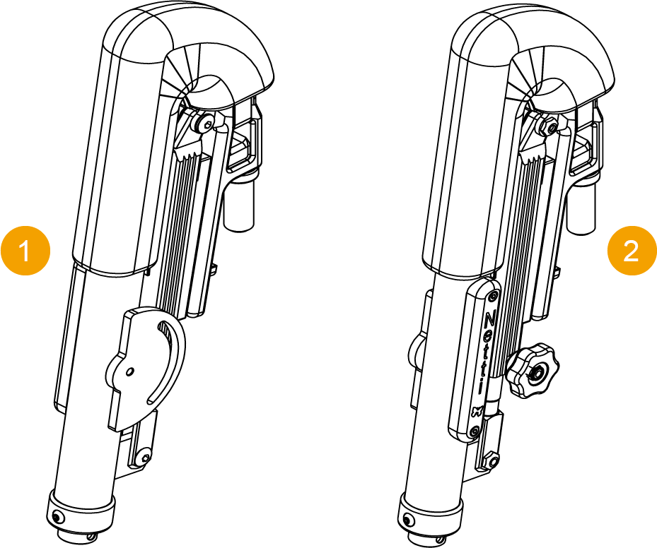 Veuillez noter que toutes les chaises équipées de repose-pieds Netti Dynamic doivent être équipées des pièces d'extension renforcées 85027+85028. Par conséquent, si vous commandez des repose-jambes Netti Dynamic en tant que pièce de rechange, vous devrez très probablement changer les pièces d'extension. Veuillez contacter le service client si vous avez des questions.