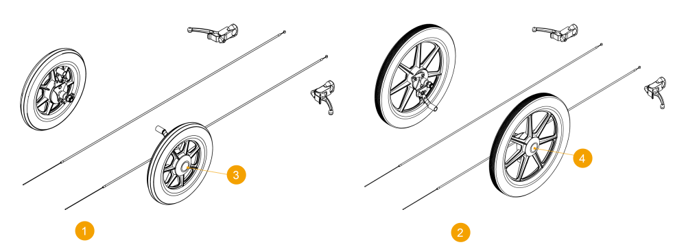 Veuillez noter qu'à partir de juin 2025 en cours, nous remplacerons les moyeux gris par des roues 22''/24'' x1 PU à frein à tambour avec moyeux noirs.