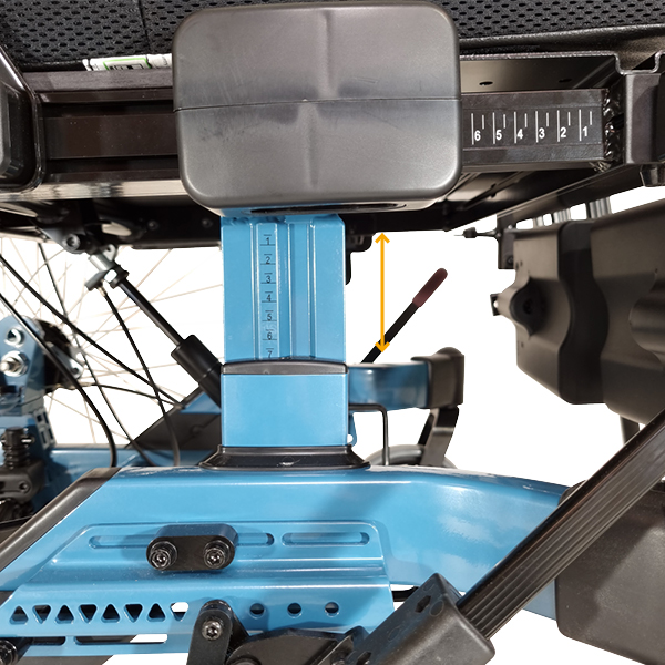 - 70 mm height adjustment without change of wheel position, wheel size or need of extra parts. For wheel combination 24'' + 7'', this means from seat height 386 to 456 mm