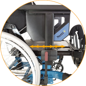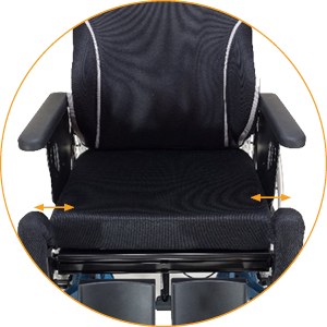 Netti V can be adjusted up to 50 mm in width. The seat width can be adjusted at the