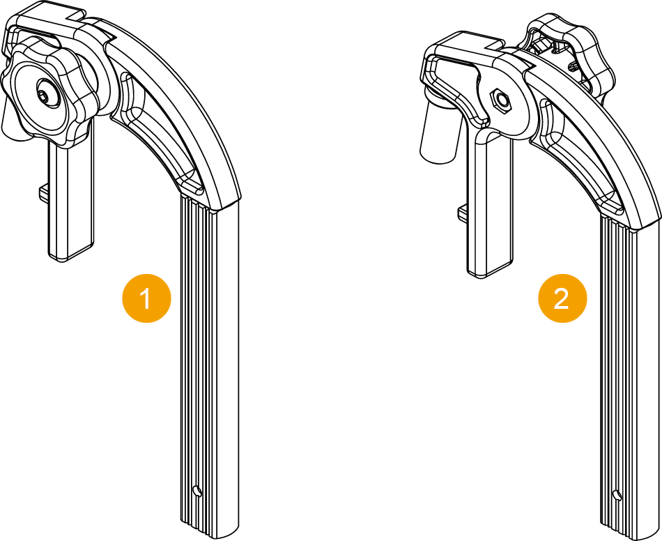 Universal benstøtter tilbyr valgfri vinkelposisjonering også bakover (inn under stolen), og er en god løsning til brukere med kontrakturer.