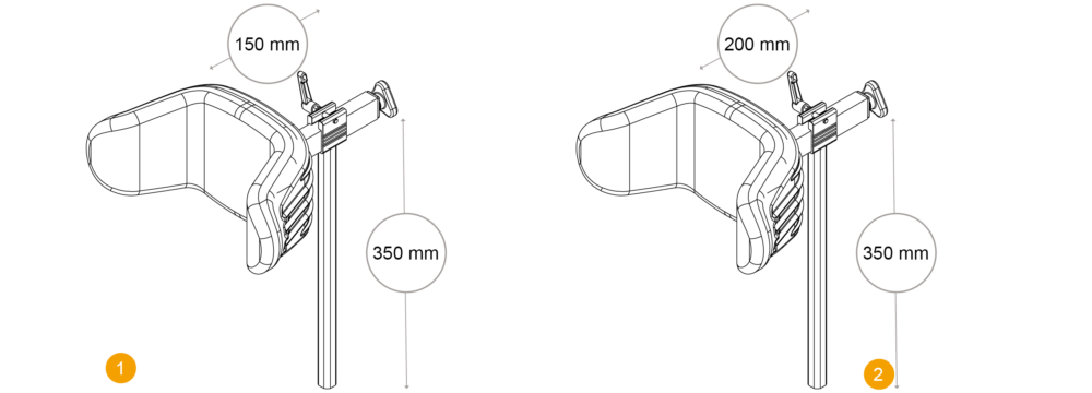 The shape of head support A offers a secured and soft head lying position. The 2 lateral side supports provide additional lateral support and ensure to keep the head in a required position by help of the 3D adjustment. It can be used if a user’s head is tending to fall sidewards or simply to offer a stable head position