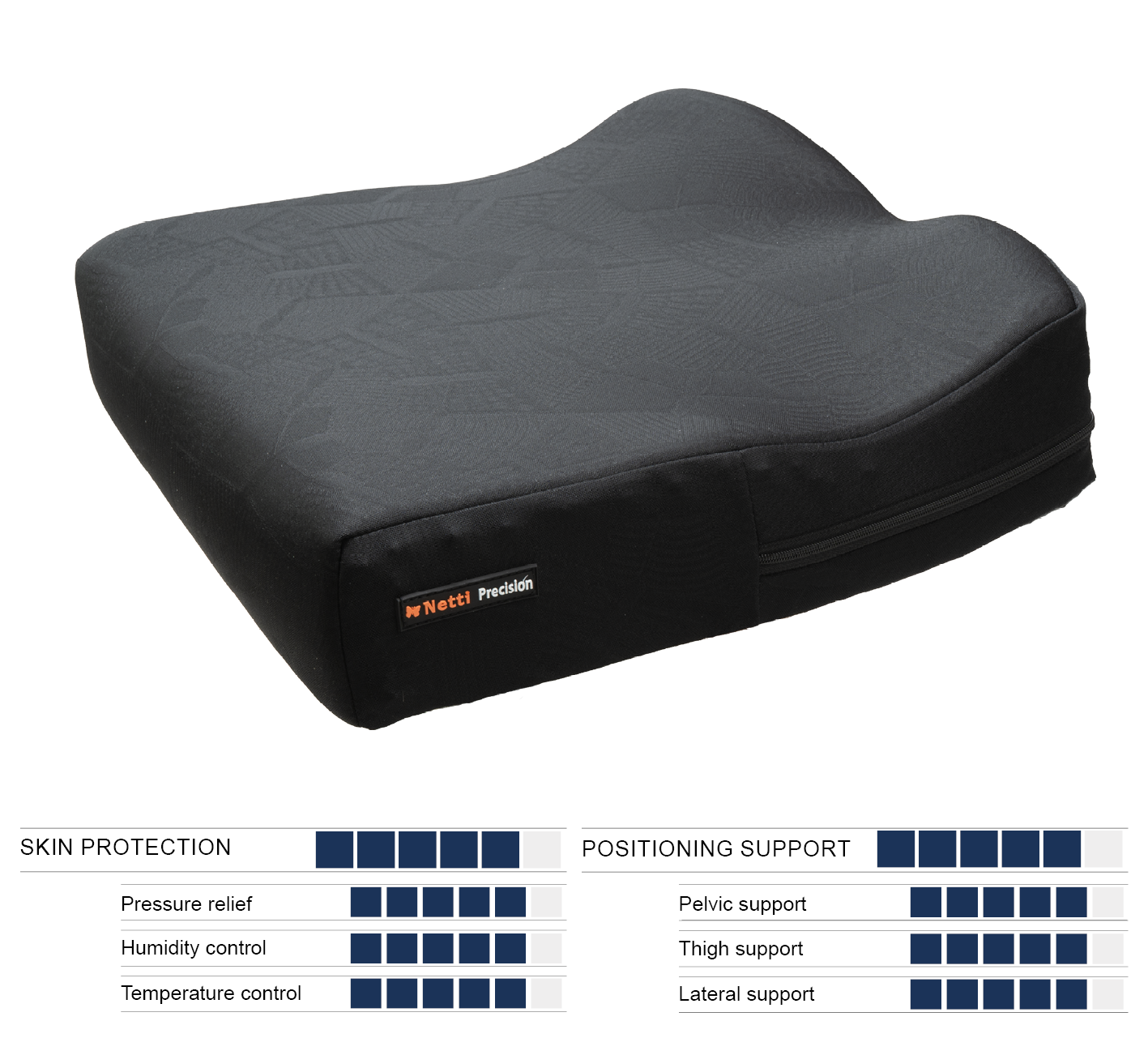 Healthy seating is key to preventing pressure ulcers. The Netti Precision 2 cushion offer a groundbreaking approach to seating stability, optimisation of pressure distribution, and thus skin protection.