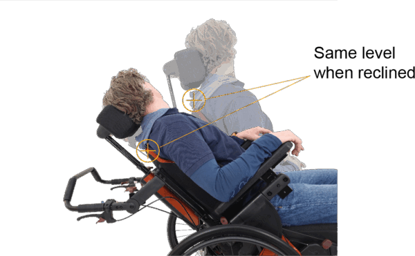 Ergonomic back design with the correct hinge point at the hip ensures that there is no friction of the skin against the back cushion when reclined, which minimizes shear forces and tissue deformation.